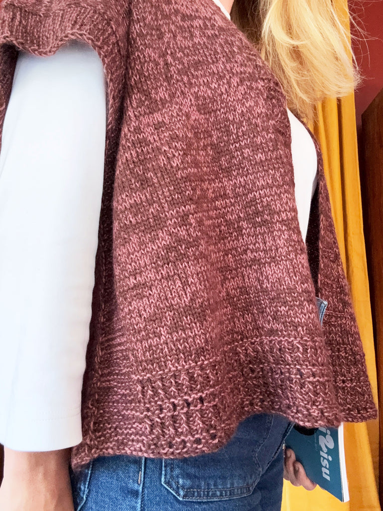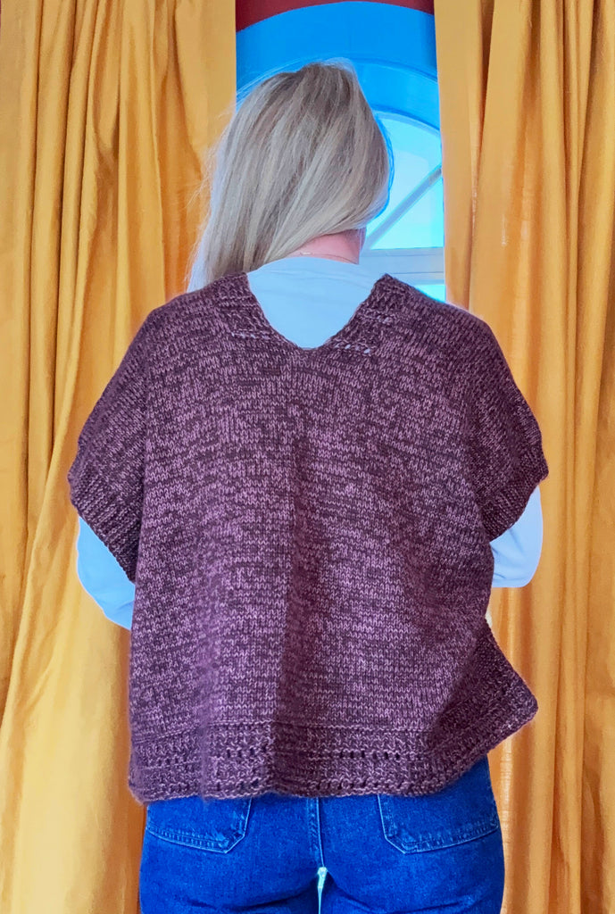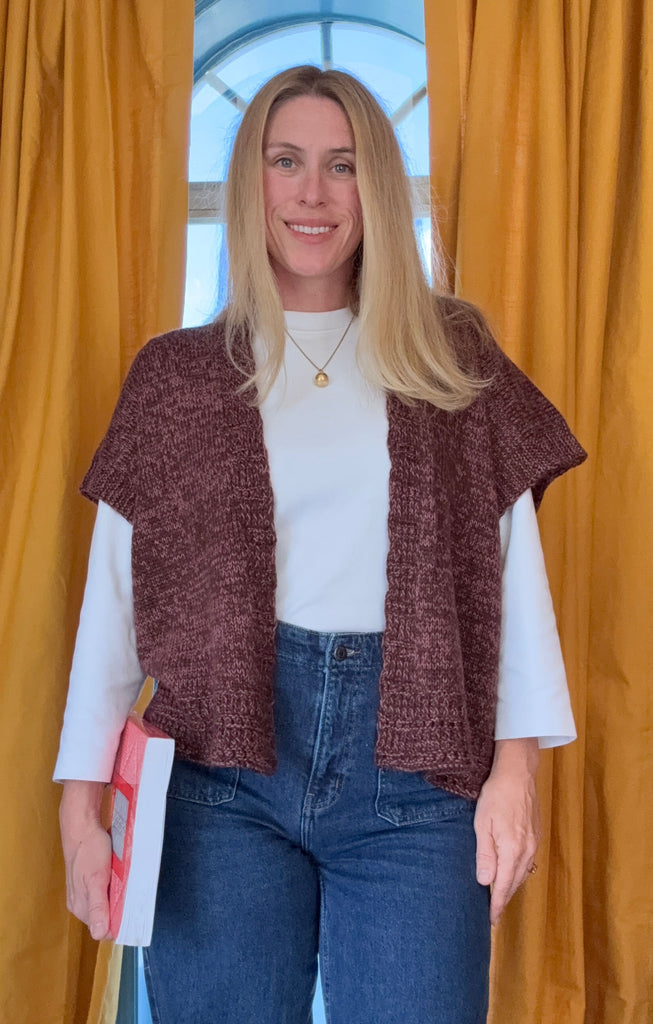 This fun and easy cardi is knit in one piece, starting from the back and knit until you separate for the 2 front panels. Then just seam the sides up together! There is a little fun stitch work along the boarders.