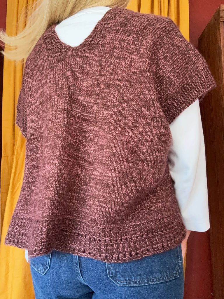 This fun and easy cardi is knit in one piece, starting from the back and knit until you separate for the 2 front panels. Then just seam the sides up together! There is a little fun stitch work along the boarders.
