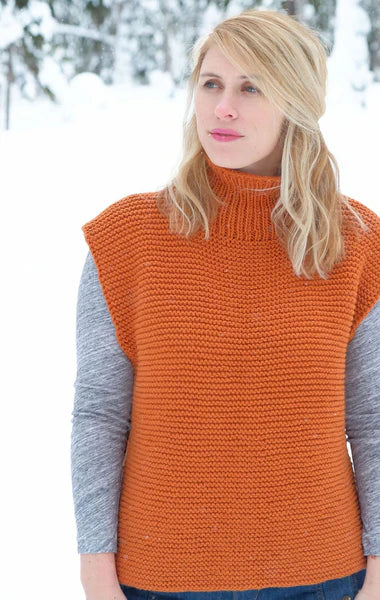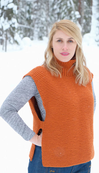Takka in Finnish means fireplace and will want to cuddle up to one after you are done with the project. Worked with yarn double stranded as one piece with the turtleneck and sidebands added at the end. There is about 4" of positive ease.